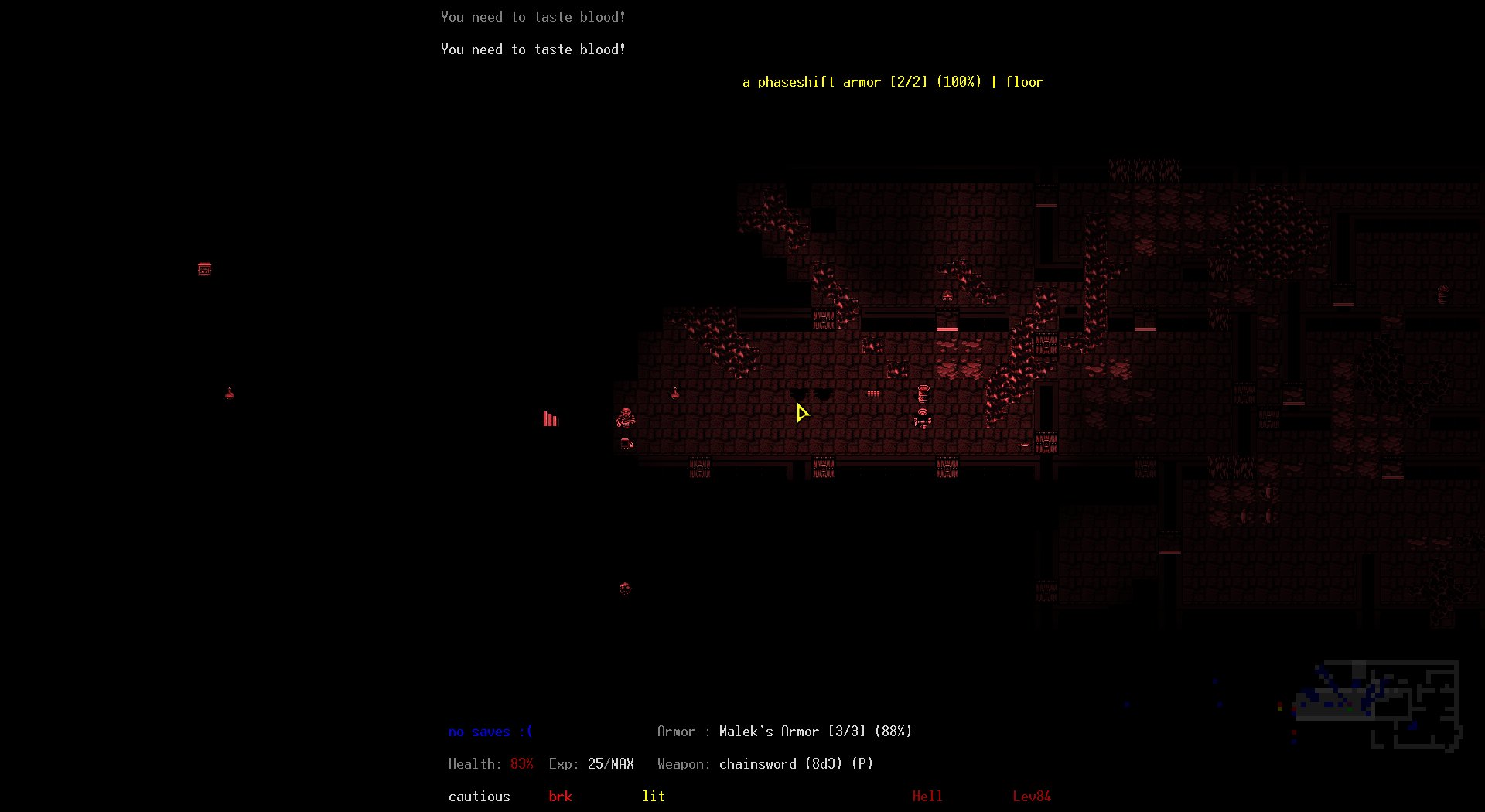 * Also never found any of the special melee weapons, so I had to rely on a P-modded Chainsword for the whole run, which was adequate but it would have been nice to have something that would have let me get through the game even faster. The Dragonslayer as Blademaster would have been the dream of course, especially as the Dragonslayer is one of two uniques I need to find one more of for Armorer Diamond (the other is the Subtle Knife, which as trash as it is, was disappointing to not find, I really do not want to get to a point where I have to intentionally grind out A666 runs to finally get Armorer Diamond...)