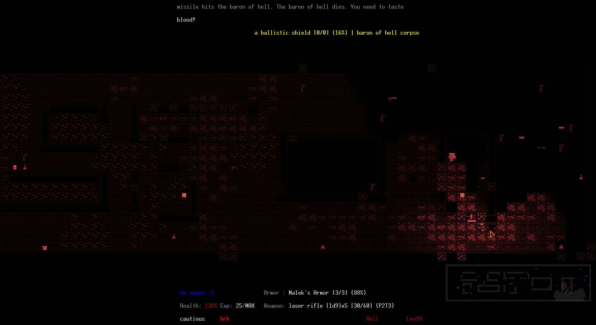 * I encountered two Barons with a Ballistic Shield during this run, which both instances at least occurred late enough where it was more amusing rather than the potential run ender it could have been if it happened early in the game (and it allowed me to make use of a Laser Rifle I held onto for about 75% of the run but never actually used otherwise).