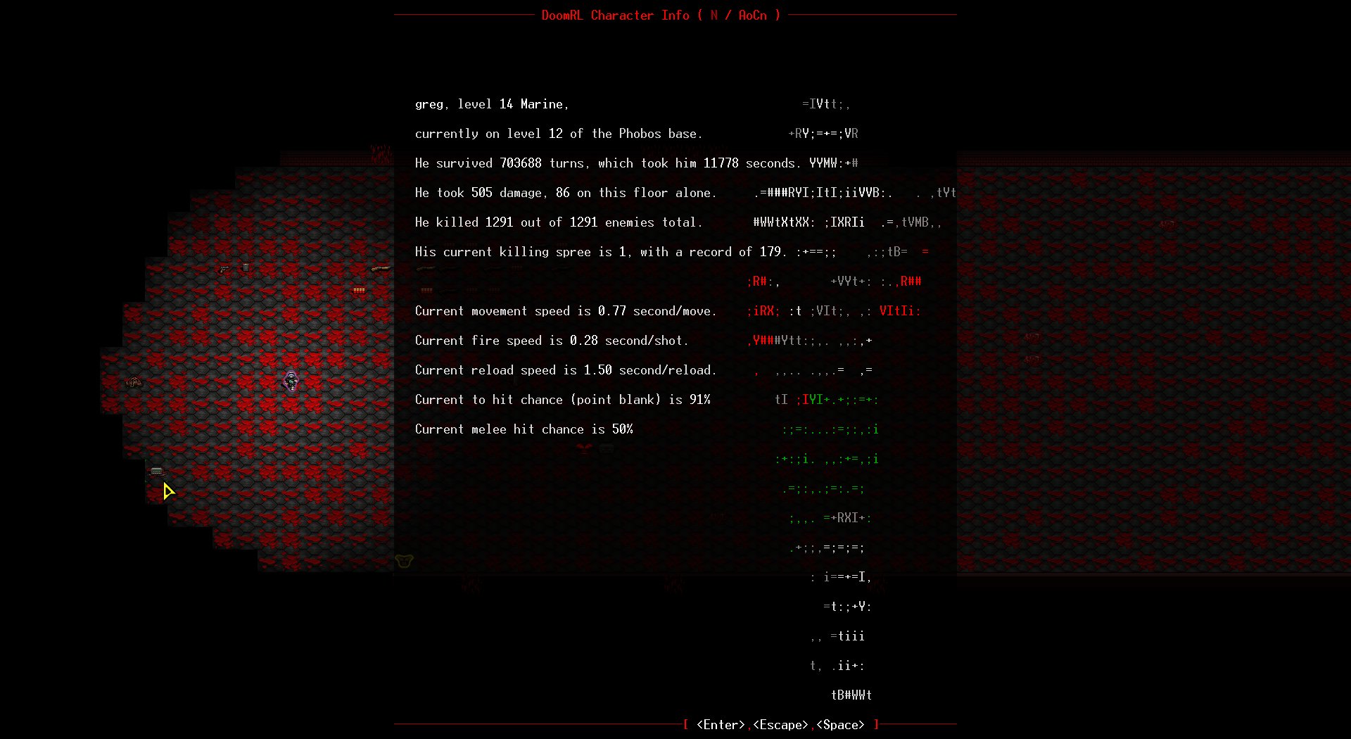 DoomRL (0.9.9.7) roguelike post-mortem character dump