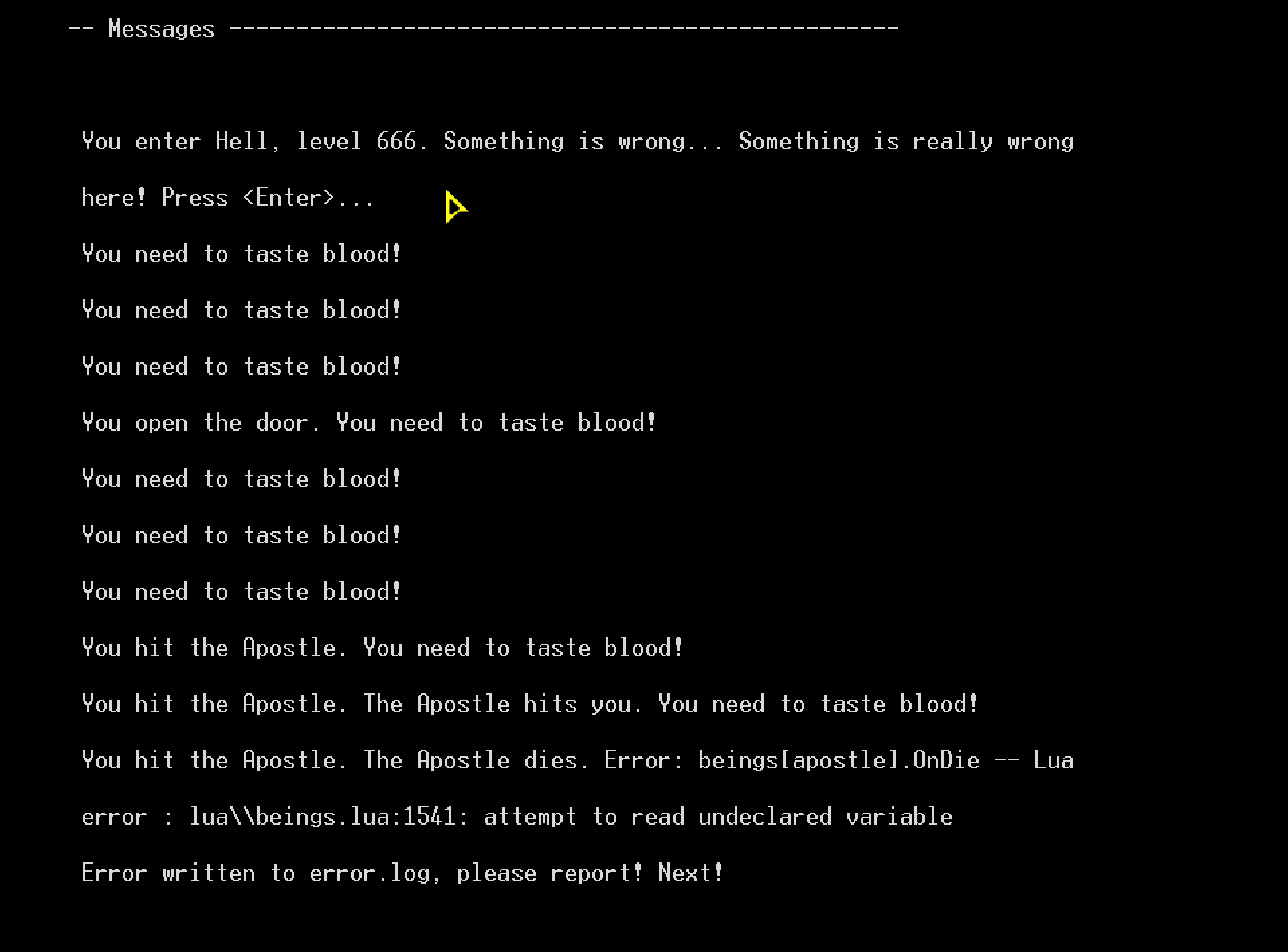 You enter Hell, level 666. Something is wrong... Something is really wrong